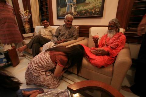 マタジが住んでいるアシュラム。州都のアハメダバードから250kmのアンバジという町だ。マタジが急きょ本拠地に戻ってしまったのでクルーも夜間に車で移動。上部の赤いレンガの建物が彼のアシュラム、非常に立派。