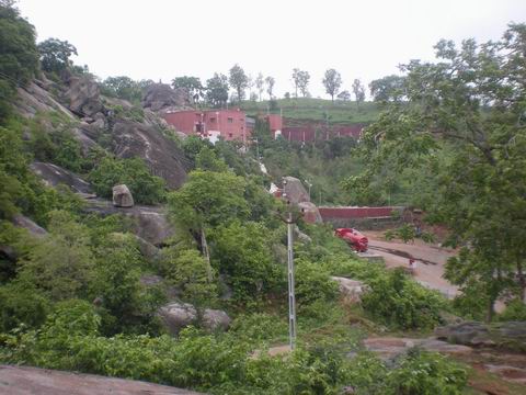 この小山の頂上が旧アンバジ寺院。ロープーウェイで頂上に行ける。ここも巡礼と観光客で賑わっていた。